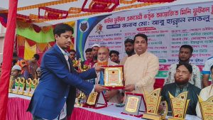 খেলা শেষে চ্যাম্পিয়ন ও রানার্সআপ দলের হাতে ট্রফি ও পুরস্কার তুলে দেন আমন্ত্রিত অতিথিবৃন্দ।