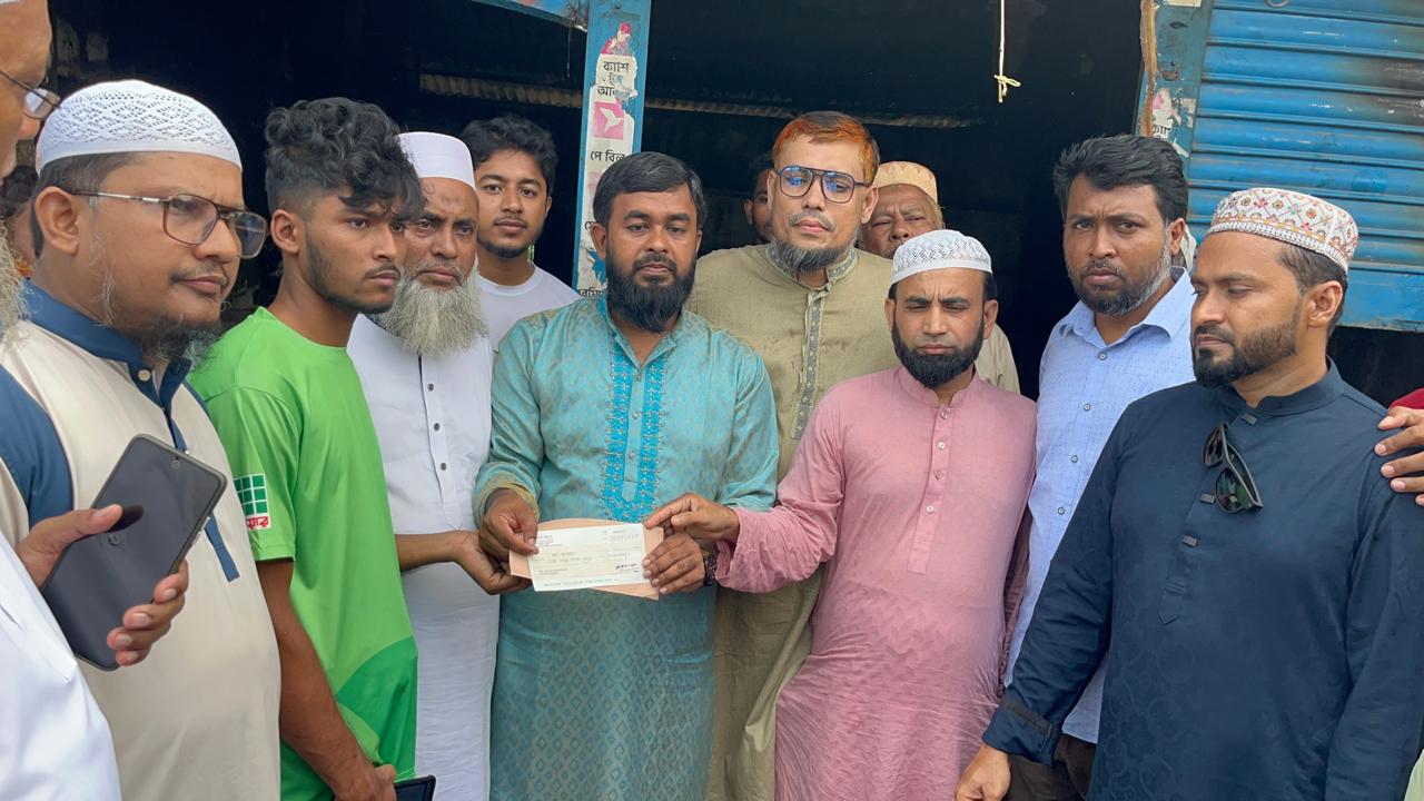 রামগঞ্জে অগ্নিকাণ্ডে ক্ষতিগ্রস্ত দোকানিকে জামায়াতের এক লাখ টাকার চেক প্রদান