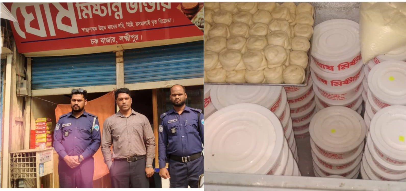 লক্ষ্মীপুরে ঘোষ মিষ্টান্ন ভাণ্ডারকে ৫০ হাজার টাকা জরিমানা